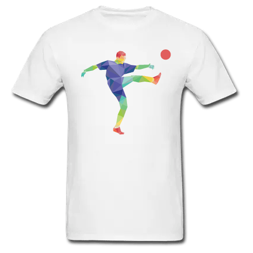 Αντρικό Μακό με Ποδοσφαιριστή για δώρο στο φίλο σου που ασχολείται με τη μπάλα με πολύχρωμα στάμπα ΑΝΔΡΙΚΟ T-SHIRT ΜΕ ΣΤΡΟΓΓΥΛΗ ΛΑΙΜΟΚΟΨΗ ΠΟΙΟTHTA — JERSEY 150 - 100% βαμβάκι Ringspun σεμί-πενιέ, Φακαρόλα στο λαιμό.