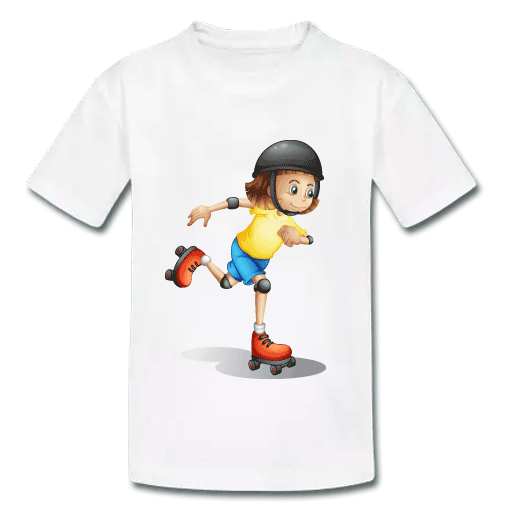Λευκό Μπλουζάκι Παιδικό με Στάμπα Roller για μοδάτα παιδιά έως 12 ετών ΠΑΙΔΙΚΟ T-SHIRT ΜΕ ΣΤΡΟΓΓΥΛΗ ΛΑΙΜΟΚΟΨΗ ΠΟΙΟTHTA — JERSEY 150