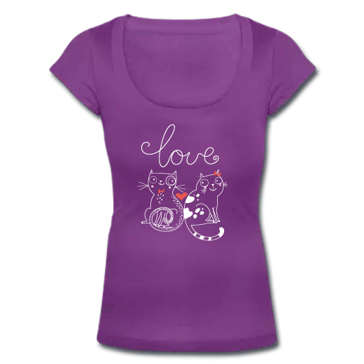 Μωβ Γυναικείο Tshirt με Ανοιχτό Λαιμό και Γατούλες για μοντέρνες κοπέλες που τους αρέσουν τα μπλουζάκια με στάμπες ΓΥΝΑΙΚΕΙΟ T-SHIRT ΠΟΙΟTHTA — JERSEY 150 100% βαμβάκι Ringspun σεμί-πενιέ ΣΤΥΛ — Θηλυκό με Βαθιά Λαιμοκοψη