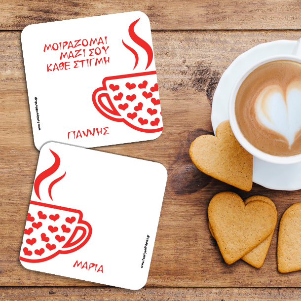 2 Σουβέρ με κοινό εικαστικό, δώρο με Ονόματα, Μήνυμα