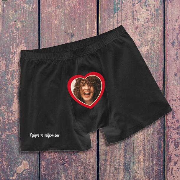 Πρωτότυπο Δώρο Ανδρικό Μποξεράκι με Φωτογραφία, Μήνυμα Προσωποποιημένο για Valentine's Day, για να πείτε χρόνια πολλά στον αγαπημένο σας ή την αγαπημένη σας με αφορμή του αγίου Βλαντίνου την Γιορτή των Ερωτευμένων, με την αγαπημένη σας φωτογραφία.