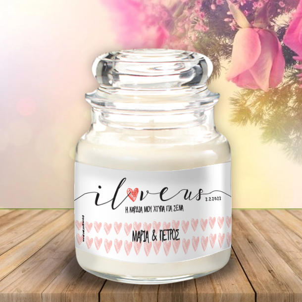 Εκφράσετε την αγάπη σας με ένα ξεχωριστό τρόπο και με ένα μοναδικό και προσωπικό δώρο Κερί αρωματικό σε βάζο με καπάκι, με Ονόματα, Ευχές.