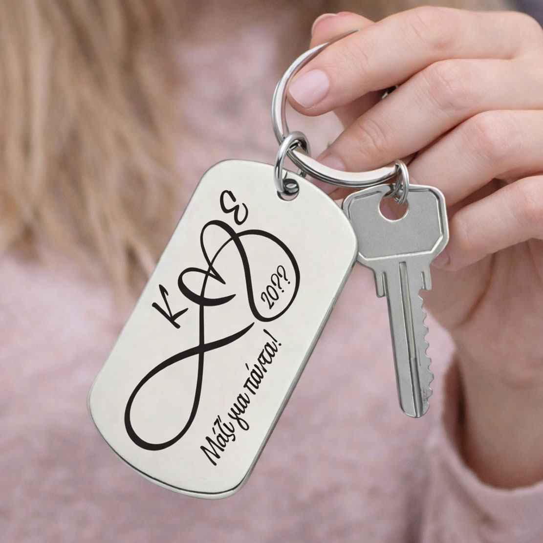 Το μεταλλικό μπρελόκ με χάραξη Αρχικά Μαζί για Πάντα, είναι ένα διαχρονικό δώρο που συμβολίζει τη σύνδεση, την αγάπη και τη δέσμευση.