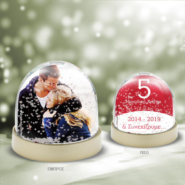 Η Χιονόμπαλα για Επέτειο Προσωποποιημένο Παιχνίδι με φωτογραφία, φτιάχνεται κάθε φορά αποκλειστικά μόνο για τον δικό σας, φίλο ή φίλη και μένει για πάντα αναμνηστικό γιατί έχει τα ονοματα και την ημερομηνία που προσφέρατε το δώρο στην 1η επετειο, 2η επετειο, 5η επέτειο, 10η επετειο, 15η επετειο.