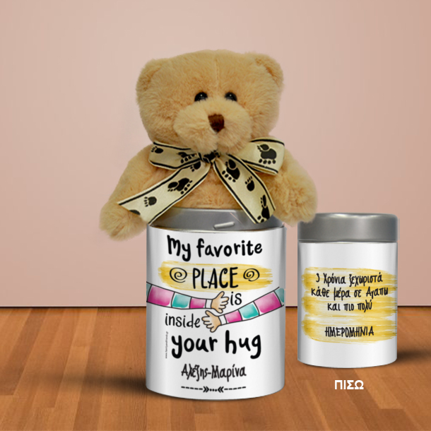 Δώρο Για Επέτειο, για Επετείους Δώρο για την Επέτειο Δώρο για Επετείους Αρκουδάκι σε Μεταλλικό κουτί με Ονόματα και Ευχές, για να εκφράσετε την αγάπη σας με ένα ξεχωριστό τρόπο και με ένα μοναδικό και προσωπικό δώρο.