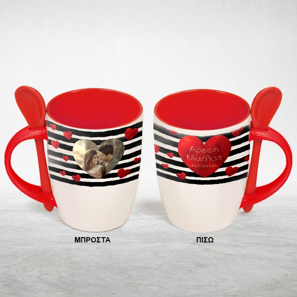 Κάντε και εσείς ένα μοναδικό Προσωποποιημένο Δώρο Κόκκινη Κούπα με Κουταλάκι με Φωτογραφία σε Καρδιά, Ονόματα, στην Γυναίκα σας ή τον ανδρα σας με αφορμή την όποια επέτειο γιορτάζετεΚούπα με κουταλάκι, Orca Coated. Το χρώμα της συσκευασίας δώρου εξαρτάται από την διαθεσιμότητα