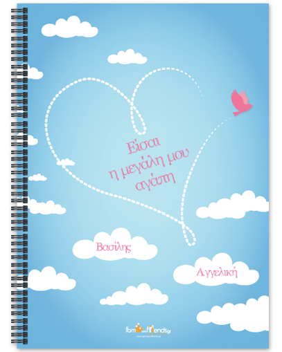 Δώρο Τετράδιο με Συννεφάκια και Ονόματα για ερωτευμένους του Αγίου Βαλεντίνου. Οικονομικές ιδέες για να εντυπωσιάσετε το ταίρι σας στην γιορτή των ερωτευμένων.