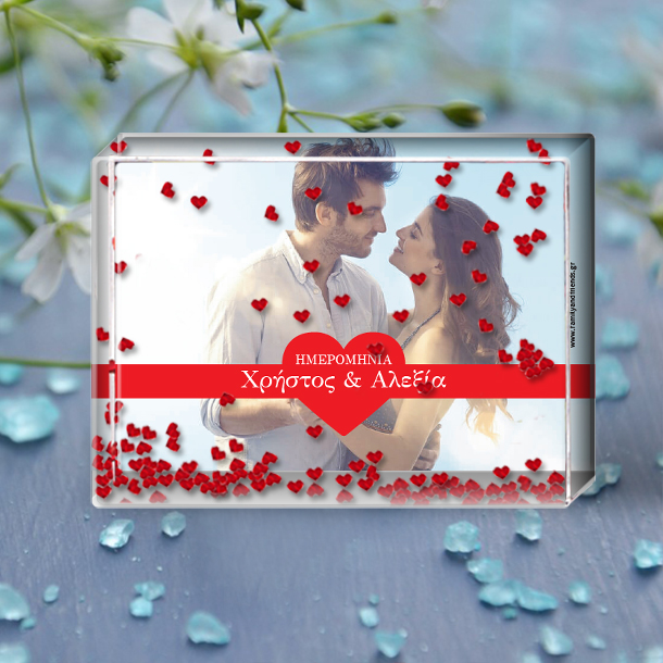 Πρωτότυπη Κορνίζα με αιωρούμενες καρδούλες σε υγρό, με Φωτογραφία, ονόματα και ημερομηνία, ένα Μοναδικό Προσωποποιημένο Δώρο για επέτειο, ερωτευμένους, για να πείτε χρόνια πολλά στον αγαπημένο σας ή την αγαπημένη σας με αφορμή κάποια επέτειο ή του αγίου Βλαντίνου την Γιορτή των Ερωτευμένων, με την αγαπημένη σας φωτογραφία.