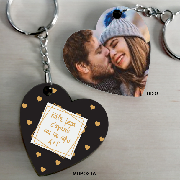 Πρωτότυπο Καρδιά Ξύλινο Μπρελόκ Διπλής Όψης, με Φωτογραφία, Αφιέρωση, ένα Μοναδικό Προσωποποιημένο Δώρο για Ερωτευμένους, για να πείτε χρόνια πολλά στον αγαπημένο σας ή την αγαπημένη σας με αφορμή του αγίου Βλαντίνου την Γιορτή των Ερωτευμένων, με την αγαπημένη σας φωτογραφία.
