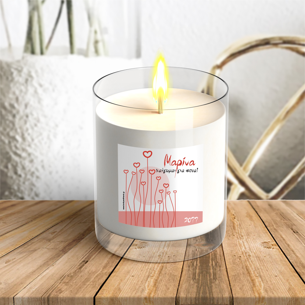 Προσωποποιημένο δώρο με  ονόματα που μπορεί να δοθεί στο αγορι σας ή το κοριτσι σας, με αφορμή τα γενέθλια ή την γιορτή ττου. Προσωποποιημένο Διακοσμητικό Αρωματικό Κερί σε Ποτήρι με Ονόματα και ημερομηνία, να δοθεί από την σύζυγο στο σύζυγο και θα είναι η έκπληξη που θα εκφράσει όλα τα συναισθήματα σας με αφορμη την επετειο σας. Πρωτότυπο Προσωποποιημένο Αρωματικό Κερί σε Ποτήρι, για να ευχηθείται χρόνια πολλά στον φίλο ή τον φίλο σας με αφορμή τα γενέθλια την γιορτή ή όποια επέτειο γιορτάζετε. Μπορείτε επίσης να τη συνδυάσετε με μια προσωποποιημένη σοκολάτα για δώρο στην γιορτή του Αγίου Βαλεντίνου