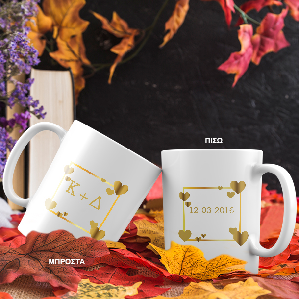 Κούπα με Καρδιές & Αρχικά, με εκτύπωση χρυσών αποχρώσεων