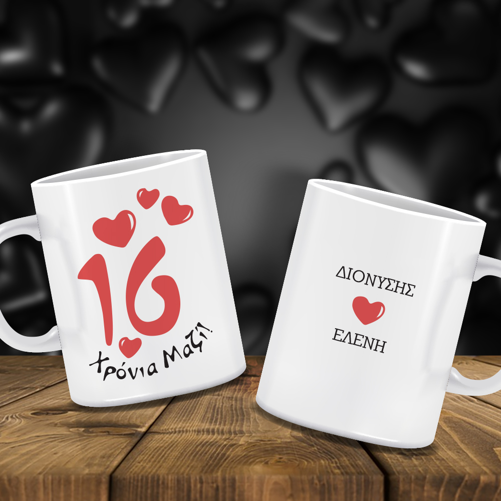 Δώρο για ζευγάρια στην επέτειο ,Κούπα για επέτειο με εκτύπωση Χρόνια, Ονόματα, Μήνυμα, προσωποποιημένο δώρο για την ημέρα των ερωτευμένων, Αγίου Βαλεντίνου, που θα δημιουργεί μοναδικές αναμνήσεις όταν θα πίνει τον καφέ του το αγόρι σας ή το κορίτσι σας.
