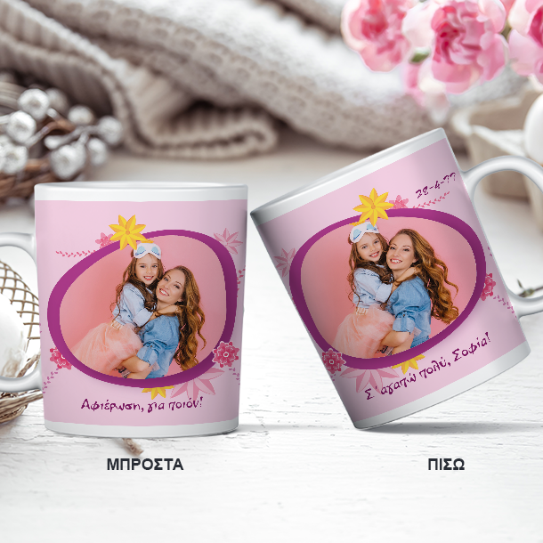 Προσωποποιημένη Κούπα με εκτύπωση 2 Φωτογραφίες, Ονόματα, Μήνυμα, δώρο στην Μαμα για την 1η Γιορτή Μητέρας, Ευχές, μπορείτε να γράψετε το όνομα σας και την ημερομηνία που θα δώσετε το δώρο.