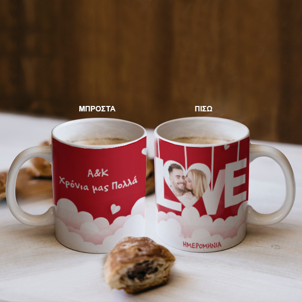 Κάντε και εσείς ένα μοναδικό προσωποποιημένο Δώρο valentine's day στον αντρα σας ή την γυναίκα σας, Κούπα με σύννεφα καρδιές, Love με Φωτογραφία, Μήνυμα, στο αγόρι σας ή το κορίτσι σας με αφορμή την όποια επέτειο γιορτάζετε και θα στολίζει το δωμάτιο για πολλά ακόμα χρόνια, δημιουργώντας μοναδικές αναμνήσεις κάθε φορά που θα το βλέπουν.