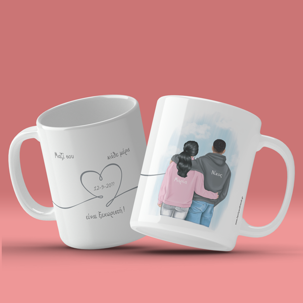 Κούπα για ζευγάρια, με σκίτσο, Ονόματα, Μήνυμα, Ημερομηνία, για να ευχηθείτε χρόνια πολλά στον φίλο με αφορμή τα γενέθλια του ή την ονομαστική του γιορτή. Η Προσωποποιημένη Κούπα για ζευγάρια, με σκίτσο, Ονόματα, Μήνυμα για Επέτειο, valentine's day φτιάχνεται κάθε φορά αποκλειστικά μόνο για τον δικό σας, φίλο ή φίλη μετά την παραγγελία σας. Προσωποποιημένο δώρο στην 1η επετειο, 2η επετειο, 5η επέτειο, 10η επετειο, 15η επετειο.