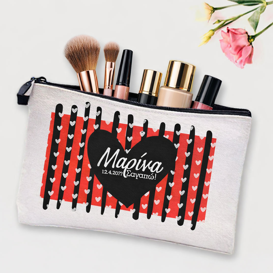 Στα Προσωποποιημένα δώρα με ή χωρίς Φωτογραφία, για το φίλο ή τη φίλη, τον άνδρα ή τη γυναίκα μπορείτε να αλλάξετε τα κείμενα όπως εσείς θέλετε ανεξάρτητα από την δική μας πρόταση. Κάντε και εσείς ένα μοναδικό προσωποποιημένο Δώρο, Πρωτότυπο Λινό Τσαντάκι, Νεσεσέρ με Ημερομηνία, Μήνυμα, στην Γυναίκα σας με αφορμή την επέτειο γνωριμίας ή γάμου που γιορτάζετε.