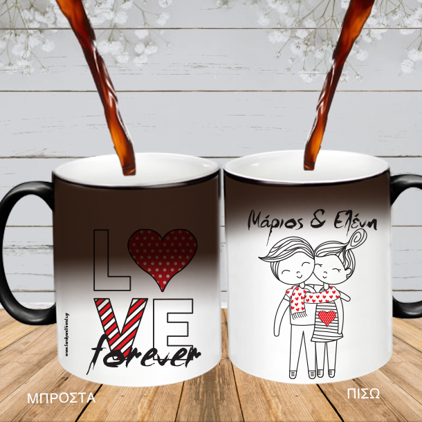 Κούπα Μαγική με εκτύπωση 2 Φωτογραφίες, Ονόματα, για να ευχηθείτε χρόνια πολλά στον φίλο ή την φίλη σας, με αφορμή την γιορτή του αγιου βαλεντινου, valentine's day.