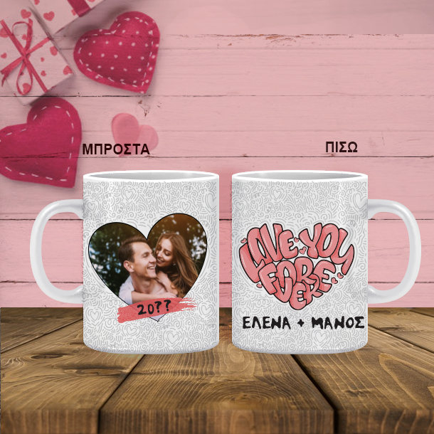 Aνακαλύψτε το μοναδικό προσωποποιημένο δώρο, Love you for ever, σε Κούπα με φωτογραφία, ονόματα, ημερομηνία και ''μιλήστε με ένα δώρο στο αγόρι σας ή το κορίτσι σας.