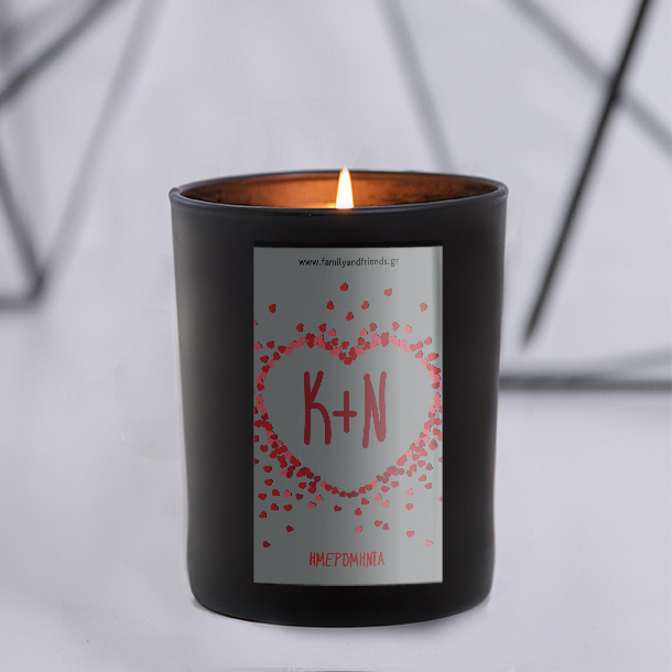 Μαύρο Ποτήρι Κερί με καρδιά με αρχικά, ημερομηνία