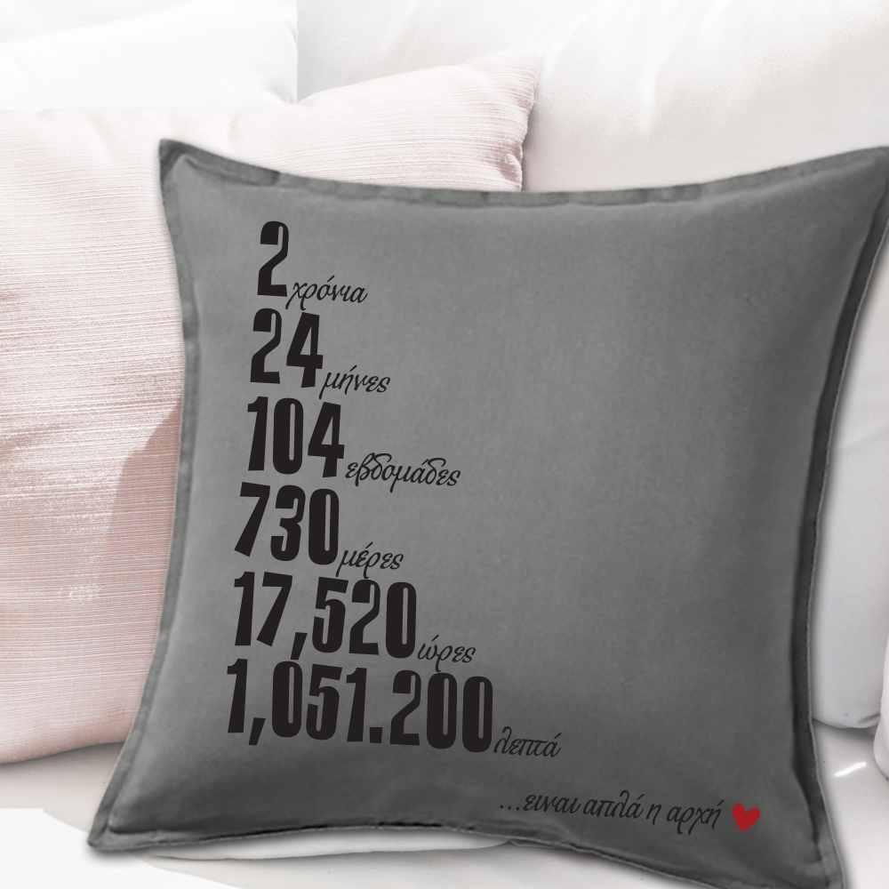 Πρωτότυπο Προσωποποιημένο Για ζευγάρια Μαξιλάρι καναπέ διακοσμητικό με Μήνυμα για την επέτειο 1 ετους, 2, 3, 4, 5 ετων σχέσης. Διακοσμητικό Μαξιλάρι γαι τον καναπε ή την κρεβατοκάμαρα σας Προσωποποιημένο με φωτογραφία, ονόματα το δικό σας και του φίλου ή της φίλης σας και ημερομηνία, μπορεί να δοθεί σαν δώρο στο αγορι σας ή το κοριτσι σας, με αφορμή τα γενέθλια ή την γιορτή των ερωτευμένων και του αγίου βαλεντίνου κάθε ερωτευμένου ζευγαριού.