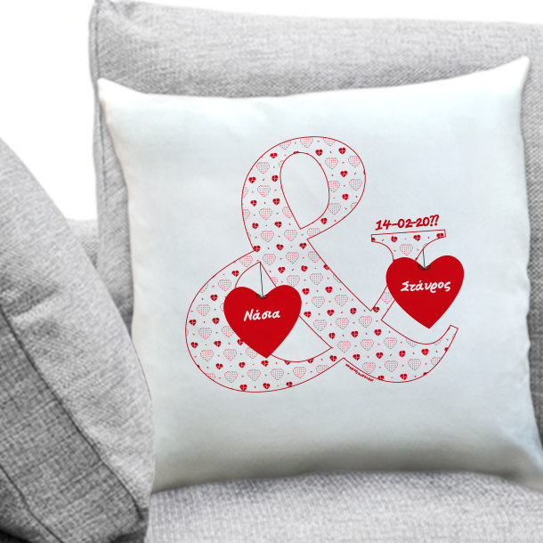 Μαξιλάρι Veloute διακοσμητικό με καρδίες, Ονόματα και Ημερομηνία