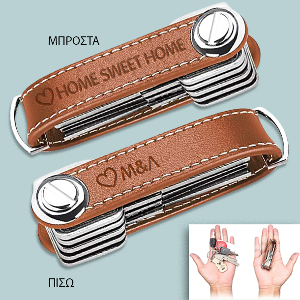 Με δυνατότητα να γυρίζετε τα κλειδιά στο εσωτερικό του, για να μην πιάνουν πολύ χώρο, Δερμάτινο Μπρελόκ Προσωποποιημένο δώρο, με laser χάραξη, για την ονομαστική στο αγόρι σας ή τον φίλο σας.