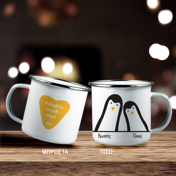 κούπα enamel Μεταλλική Με πιγκουίνους Μήνυμα, Ονόματα, είναι ένα πρωτότυπο και οικονομικό δώρο που μπορείτε να κάνετε στη γιορτή κάθε φίλου συγγενή, για να του δείξετε ότι τον θυμηθήκατε και πόσο πολύ τον αγαπάτε!