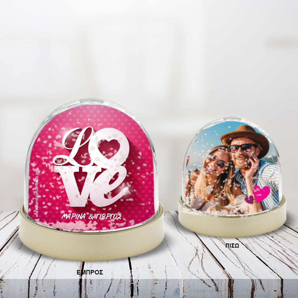 Δώρο για στο αγορι σας ή το κοριτσι σας, με αφορμή τα γενέθλια ή την γιορτή των ερωτευμένων και του αγίου βαλεντίνου Love σε Χιονόμπαλα με Φωτογραφία, Ονόματα.