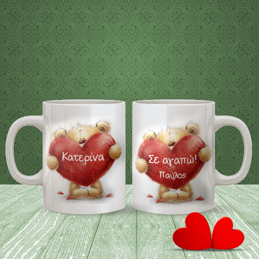 Πρωτότυπο Δώρο για Ερωτευμένους Προσωποποιημένη Κούπα με Αρκουδάκι, Καρδιά, με όνομα, για την γιορτή του Αγίου Βαλεντίνου ή την επέτειο ερωτευμένων ζευγαριών, για να εκφράσετε την αγάπη σας με ένα ξεχωριστό τρόπο και με ένα μοναδικό και προσωπικό δώρο. Επίσης η Προσωποποιημένη Κούπα με Αρκουδάκι, Καρδιά, με εκτύπωση το όνομα του φίλου ή της φίλης σας, μπορεί να δοθεί σαν δώρο με αφορμή τα γενέθλια ή την γιορτή κάθε ερωτευμένου ζευγαριού, ή από την σύζυγο στο σύζυγο γιατί είναι προσωπικό, ξεχωριστό και δημιουργεί μοναδικές αναμνήσεις. Μπορείτε επίσης να τη συνδυάσετε με μια προσωποποιημένη σοκολάτα για το δώρο της γιορτής του Αγίου Βαλεντίνου