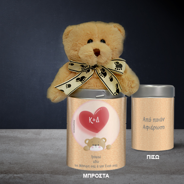 Εκφράστε την αγάπη σας με ένα ξεχωριστό τρόπο και με ένα μοναδικό και προσωπικό δώρο με Μήνυμα Προσωποποιημένο Αρχικά και Μήνυμα, Μεταλλικό Κουτί με Αρκουδάκι, που δημιουργεί μοναδικές στιγμές.