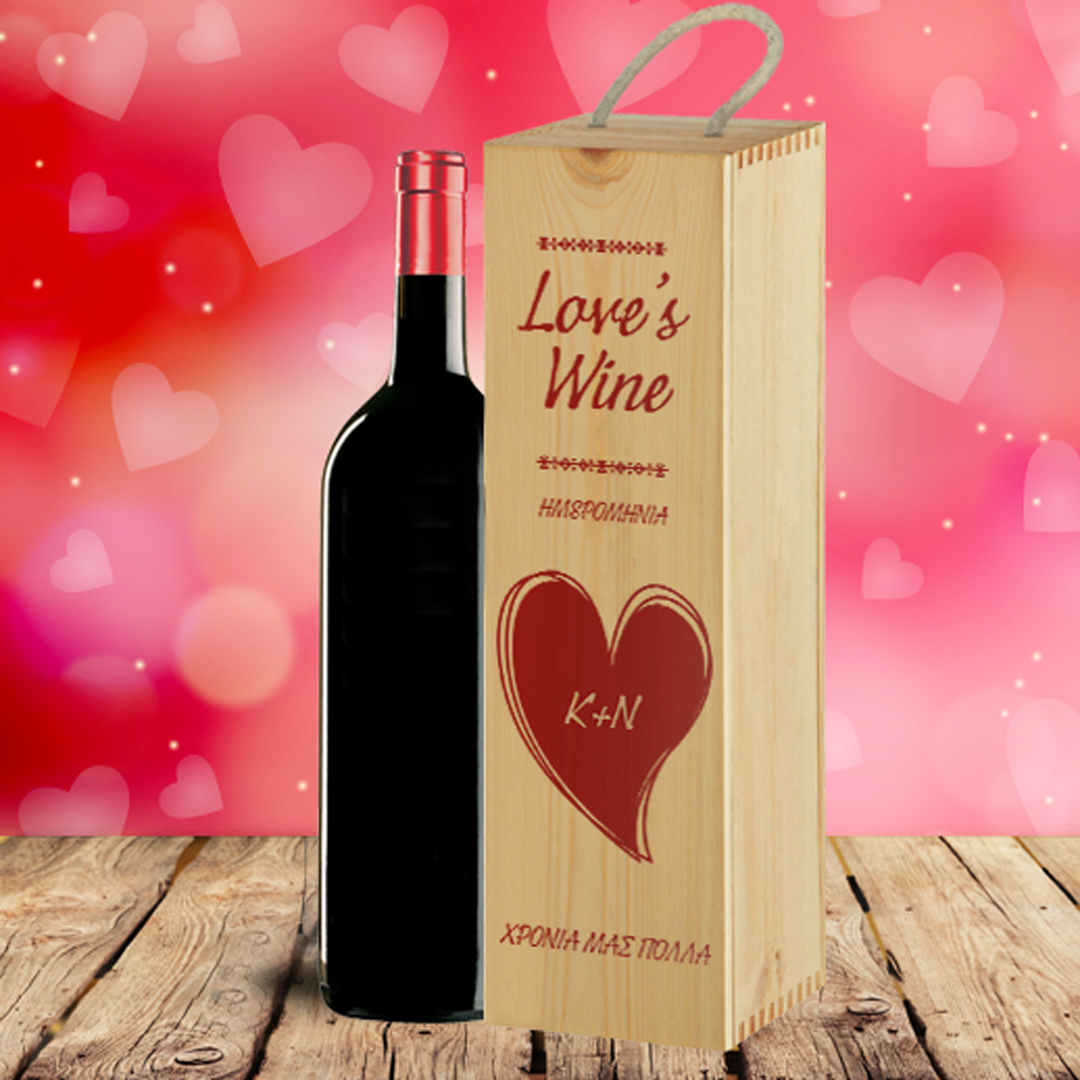Ένα Μοναδικό Προσωποποιημένο Δώρο για Ερωτευμένους Προσωποποιημένο Δώρο Ξύλινο Κουτί για Κρασί, με Αρχικά και ημερομηνία, για να πείτε χρόνια πολλά στον αγαπημένο σας ή την αγαπημένη σας με αφορμή την Γιορτή των Ερωτευμένων. Το Πρωτότυπο Δώρο για Ερωτευμένους Προσωποποιημένο Δώρο Ξύλινο Κουτί για Κρασί, με Αρχικά, είναι ένα πρωτότυπο και οικονομικό δώρο που μπορείτε να κάνετε με κάθε αφορμή στη σχέση σας, που θα εντυπωσιάσει και θα δείξετε ότι τον θυμηθήκατε και πόσο πολύ τον αγαπάτε! Κάντε και εσείς ένα μοναδικό προσωποποιημένο Δώρο για του αγίου βαλεντίνου Προσωποποιημένο Δώρο Ξύλινο Κουτί για Κρασί, με Αρχικά, στην Γυναίκα σας ή τον ανδρα σας με αφορμή την όποια επέτειο γιορτάζετε. Δώρο για Ερωτευμένους Προσωποποιημένο Δώρο Ξύλινο Κουτί για Κρασί, για να ευχηθείται χρόνια πολλά στον φίλο ή τον φίλο σας με αφορμή τα γενέθλια την γιορτή ή όποια επέτειο γιορτάζετε. Προσωποποιημένο Δώρο Ξύλινο Κουτί για Κρασί, με Αρχικά σας, φτιάχνεται κάθε φορά αποκλειστικά μόνο για τον δικό σας, φίλο ή φίλη και μένει για πάντα αναμνηστικό γιατί έχει τα ονοματα και την ημερομηνία που προσφέρατε το δώρο. Προσωποποιημένο Δώρο Ξύλινο Κουτί για Κρασί, είναι ένα δώρο για την γιορτή του αγίου βαλεντίνου ή για κάθε επέτειο κάθε ζευγαριού που γιορτάζει. ΔΕΙΤΕ ΤΑ ΚΡΑΣΙΑ ΠΟΥ ΧΡΗΣΙΜΟΠΟΙΟΥΜΕ ΠΕΡΙΓΡΑΦΗ ΕΠΙΛΟΓΩΝ Α. Ξύλινο Κουτί για 1 Κρασί με ειδική Προσωποποιημένη εκτύπωση Ξύλινο κουτί για ένα μπουκάλι κρασί Διάσταση 9,5cm X 34,5cm Χ 9,8cm Β. Με Κόκκινο Κρασί Ξύλινο Κουτί με ειδική Προσωποποιημένη εκτύπωση και ένα Κόκκινο Μπουκάλι Κρασί Γ. Με Λευκό Κρασί Ξύλινο Κουτί με ειδική Προσωποποιημένη εκτύπωση και ένα Λευκό Μπουκάλι Με ένα κλικ: ΔΕΙΤΕ ΤΑ ΚΡΑΣΙΑ ΠΟΥ ΧΡΗΣΙΜΟΠΟΙΟΥΜΕ