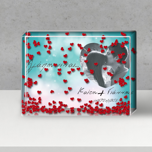 Πρωτότυπη Κορνίζα με αιωρούμενες καρδούλες σε υγρό, Αγάπη είναι ... προσωποποιημένη με ονόματα και ημερομηνία, ένα Μοναδικό Προσωποποιημένο Δώρο για Ερωτευμένους, για να πείτε χρόνια πολλά στον αγαπημένο σας ή την αγαπημένη σας με αφορμή του αγίου Βλαντίνου την Γιορτή των Ερωτευμένων, με την αγαπημένη σας φωτογραφία.