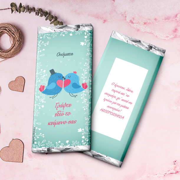 Πρωτότυπο δώρο Για επέτειο σχέσης, την γιορτή των ερωτευμένων, για αγίου Βαλεντίνου, Για ζευγάρια, Σοκολάτα με πουλάκια Προσωποποιημένη με το μήνυμα σας και αφιέρωση και ημερομηνία.