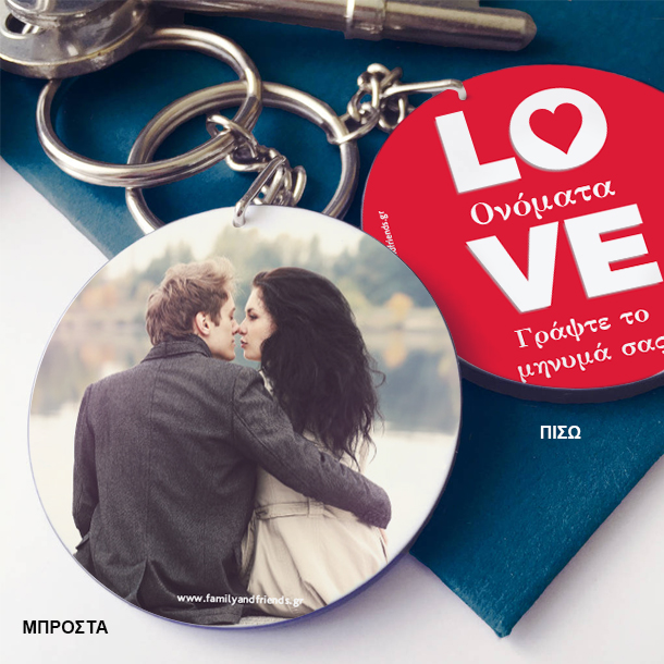 Δώρο για Ερωτευμένους Στρογγυλό Μπρελόκ Δύο Όψεων, με Φωτογραφία, Μήνυμα, Αφιέρωση, είναι ένα δώρο για την γιορτή του αγίου βαλεντίνου που γιορτάζουν οι ερωτευμένοι.
