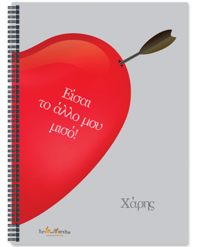 Τετράδιο Σετ Δώρο σε Αγόρια του Αγίου Βαλεντίνου με μισή καρδιά και βέλος και το όνομα του αγαπημένου σου μόνο 9,50 ευρώ.