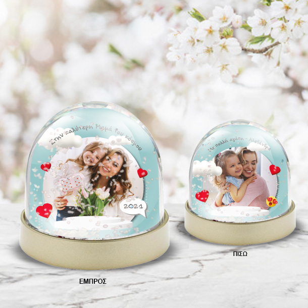 Χιονόμπαλα με 2 Φωτογραφίες, Ονόματα, Μήνυμα, Ένα Μοναδικό Προσωποποιημένο Δώρο, για να πείτε χρόνια πολλά στην αγαπημένη σας Μαμά με αφορμή την Γιορτή της Μητέρας.