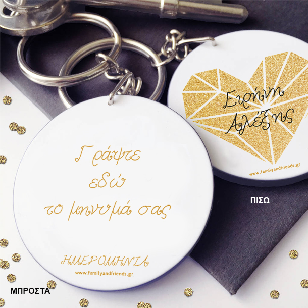 Μπρελόκ Στρογγυλό Διπλής Όψης, με Φωτογραφία, Μήνυμα δικό σας, φτιάχνεται κάθε φορά αποκλειστικά μόνο για τον δικό σας, φίλο ή φίλη και μένει για πάντα αναμνηστικό γιατί έχει τα ονοματα και την ημερομηνία που προσφέρατε το δώρο.