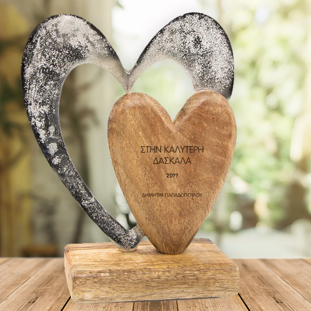 Με χάραξη Διακοσμητικό με Μεταλλική & Ξύλινη Καρδιά, Μήνυμα, χαραγμένο με laser, ένα διαφορετικό δώρο για την Δασκαλα του παιδιού σας, τώρα που η σχολική χρονιά τελειώνει που θα μείνει αναμνηστικό για πάντα. Με χάραξη Διακοσμητικό με Μεταλλική & Ξύλινη Καρδιά, Μήνυμα Δώρο για Γυναίκα Προσωποποιημένο με Ονόμα μπορείτε να το προσφέρετε στην μαμα για δώρο γενεθλίων η για την γιορτή της μητέρας & να δείξετε πόσο την αγαπάτε και ότι την θυμηθήκατε.
