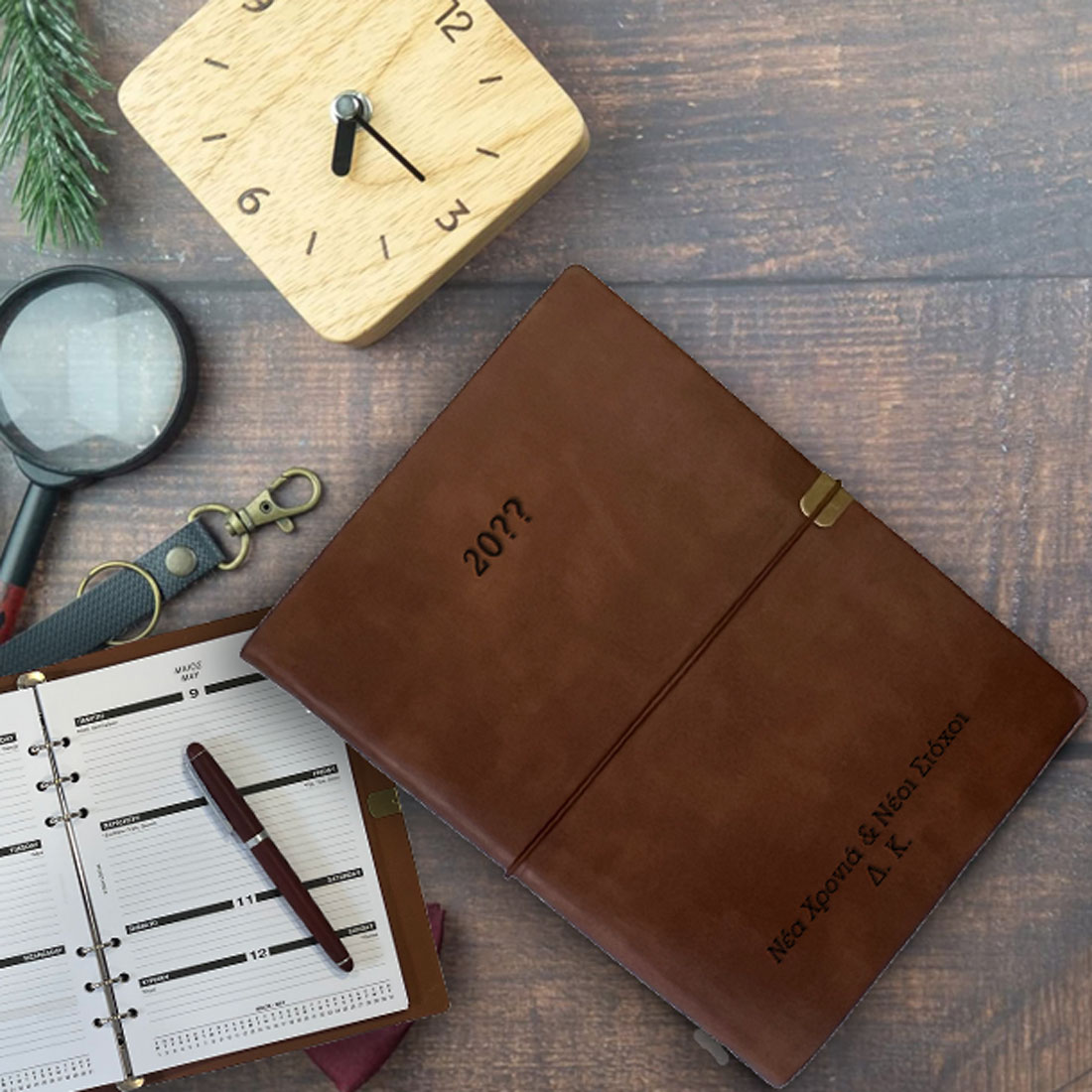 Ξεχωριστό Προσωποποιημένo Δώρο γενεθλίων ή Ονομαστικής γιορτής με χάραξη laser, για να ευχηθείτε χρόνια πολλά στον παππού ή την γιαγιά που γιορτάζουν τα γενέθλια τους ή την ονομαστική τους γιορτή. Ημερολόγιο Δερμάτινο με Κρίκους & Μήνυμα, Αρχικά, πρωτότυπο και ξεχωριστό δώρο για τον αδελφό σας ή τον άντρα σας που θα το έχει κάθε μέρα στο γραφείο του. Ένα δώρο που θα κρατηθεί αναμνηστικό για πάντα και θα θυμίζει αυτή την μοναδική στιγμή.