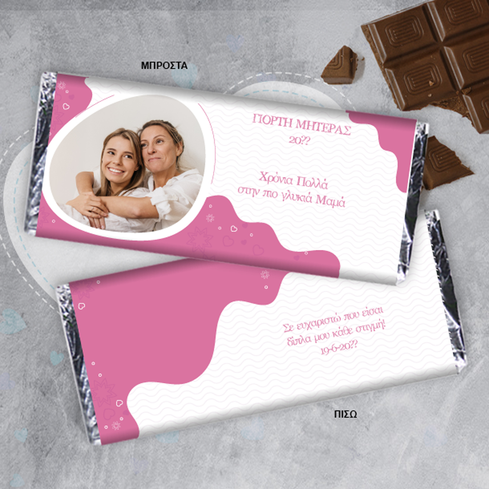 Επιλέξτε ένα πρωτότυπο & οικονομικό προσωποποιημένο δώρο για την Γιορτή της Μητέρας, mothers day στην αγαπημένη σας Μαμά ή Γιαγιά. Ένα μοναδικό προσωποποιημενο δώρο που θα κλεψει τις εντυπώσεις είναι η προσωποποιημένη Σοκολάτα Δώρο με Φωτογραφία, Μήνυμα, Ονόματα, Ευχές, που θα μείνει αναμνηστικό για πολύ καιρό.