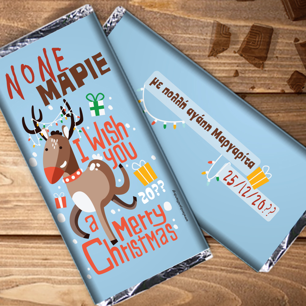 Γιορτινή Σοκολάτα με Αφιέρωση στο περιτύλιγμα, για Νονά, Νονό, ένα μοναδικό, προσωποποιημένο χριστουγεννιάτικο Δώρο για κάθε φίλη που θα συναντήσετε αυτές τις γιορτές.