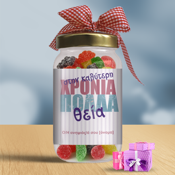 Πρωτότυπο αναμνηστικό Προσωποποιημένο Δώρο για την Θεία τον Θείο, Βαζάκι Καραμέλες με Χρόνια Πολλά για Ονομαστική Γιορτή, με όνομα και αφιέρωση, για να εκφράσετε σε όποιον θέλετε τις ευχές σας και την αγάπη σας, με ένα ξεχωριστό τρόπο και με ένα μοναδικό και προσωπικό δώρο.