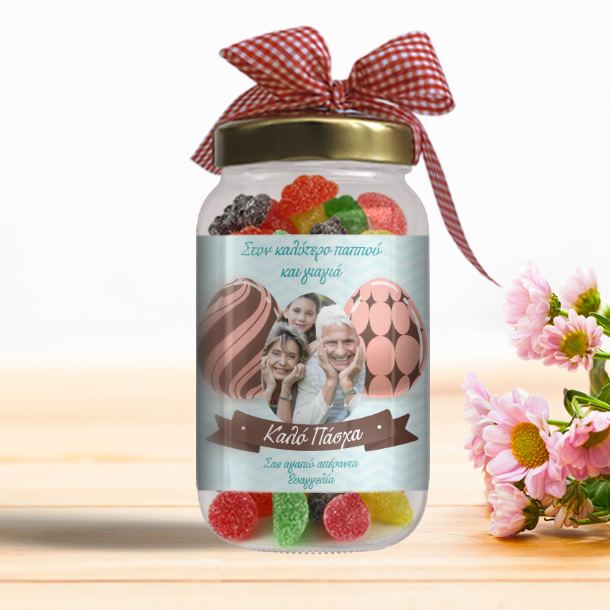 Δώρο για Πάσχα με Φωτογραφία, Ευχές σε Βαζάκι με Ζελεδάκια και Ονόματα, για τη Γιαγιά και το Παππού, μπορεί να δοθεί σαν πασχαλινό δώρο και στον θείο και στη Θεία, στη Μαμά και στο Μπαμπά και θα εκφράσει με μοναδικό τρόπο τις ευχές σας για την ανάσταση και τις ημέρες του Πάσχα.