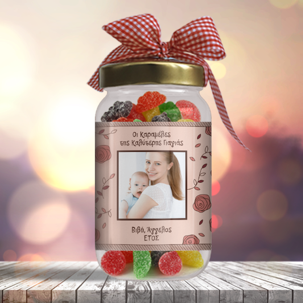 Βαζάκι με Καραμέλες Προσωποποιημένο Δώρο, Οι Καραμέλες της Καλύτερης ....., με Φωτογραφία, Ευχές, ονόματα και ημερομηνία, ένα Μοναδικό Προσωποποιημένο Δώρο για την γιορτή της Μητέρας, για να πείτε χρόνια πολλά στην αγαπημένη σας μαμά που γιορτάζει.