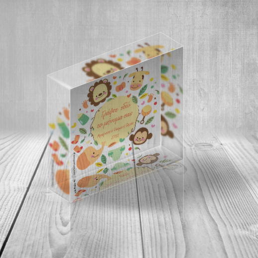 Το δώρο που θα ξεχωρίσει από όλα τα άλλα και θα στολίζει το παιδικό δωμάτιο αν όχι για πάντα, σίγουρα για πολλά χρόνια είναι το Γράψτε αυτό που θέλετε, στο Δώρο Διακοσμητικό Προσωποποιημένο Plexiglas για Νεογέννητο μαζί με το κείμενο που θέλετε να γράψετε για να ευχηθείτε στο νεογέννητο αγοράκι ή κοριτσάκι και τους γονείς του.