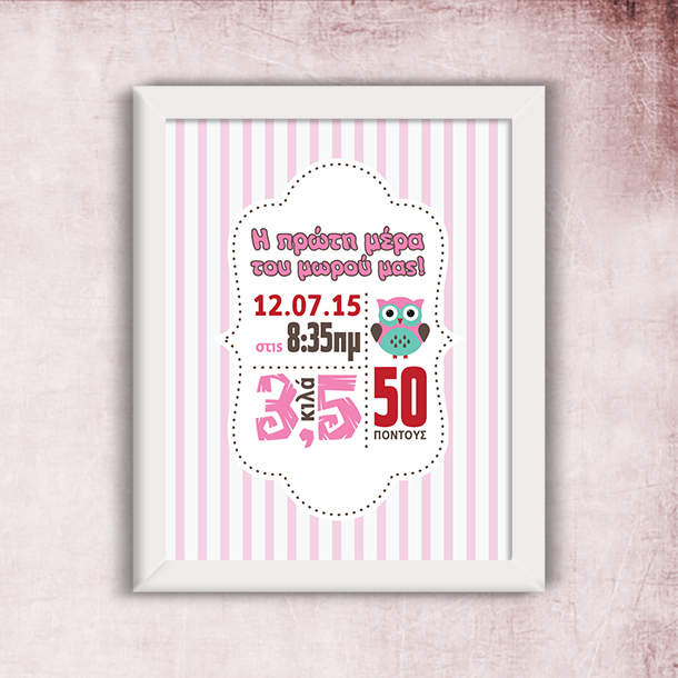 Να σας ζήσει με δωρο προσωποποιημένο Κάδρο με Στοιχεία Γέννησης Δώρο για Νεογέννητο Κοριτσάκι με Ημερομηνία, βαρος ύψος, κιλά, που θα ξεχωρίσει από όλα τα άλλα και θα στολίζει το παιδικό δωματιο αν όχι για πάντα, σίγουρα για πολλά χρόνια το Δώρο για Νεογέννητο μωρό κορίτσι.