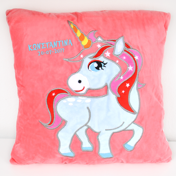Μαξιλάρια με Μονόκερο Διακοσμητικά με Όνομα, Ημερομηνία, ένα διαφορετικό και πρωτότυπα δώρο για κάθε κορίτσι, κοριτσάκι, μαθήτρια του νηπιαγωγείου, δημοτικού, του γυμνασίου.