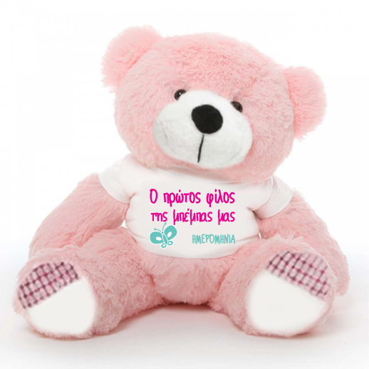 Ένα μοναδικό δώρο για κάθε νεογέννητο κοριτσάκι στο οικογενειακό σας περιβάλλον, που μπορείτε να Ο Πρώτος Φίλος της ..., Αρκούδος 45cm Δώρο για Νεογέννητο Κοριτσάκι, Ημερομηνία, με προσωποποιημένο tshirt για να ευχηθείτε και να Καλωσορίσετε την Μπέμπα, που μόλις γεννήθηκε και να στους γονείς του.