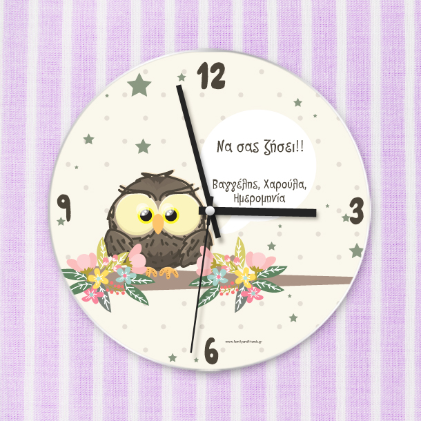 33680|Ρολόι με Κουκουβάγια Προσωποποιημένο Δώρο με Ευχές, Ημερομηνία