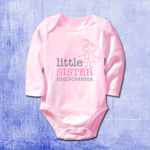 Φορμάκι Μακρυμάνικο Little Sister με ημερομηνία γέννησης, για κοριτσάκι